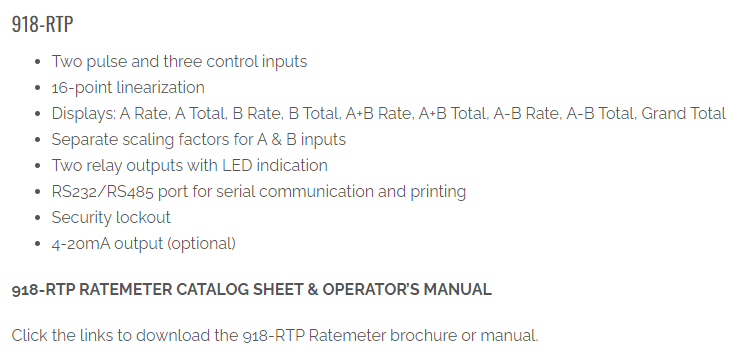 FLOWMETRICS 速率计和累加器918-RTP系列